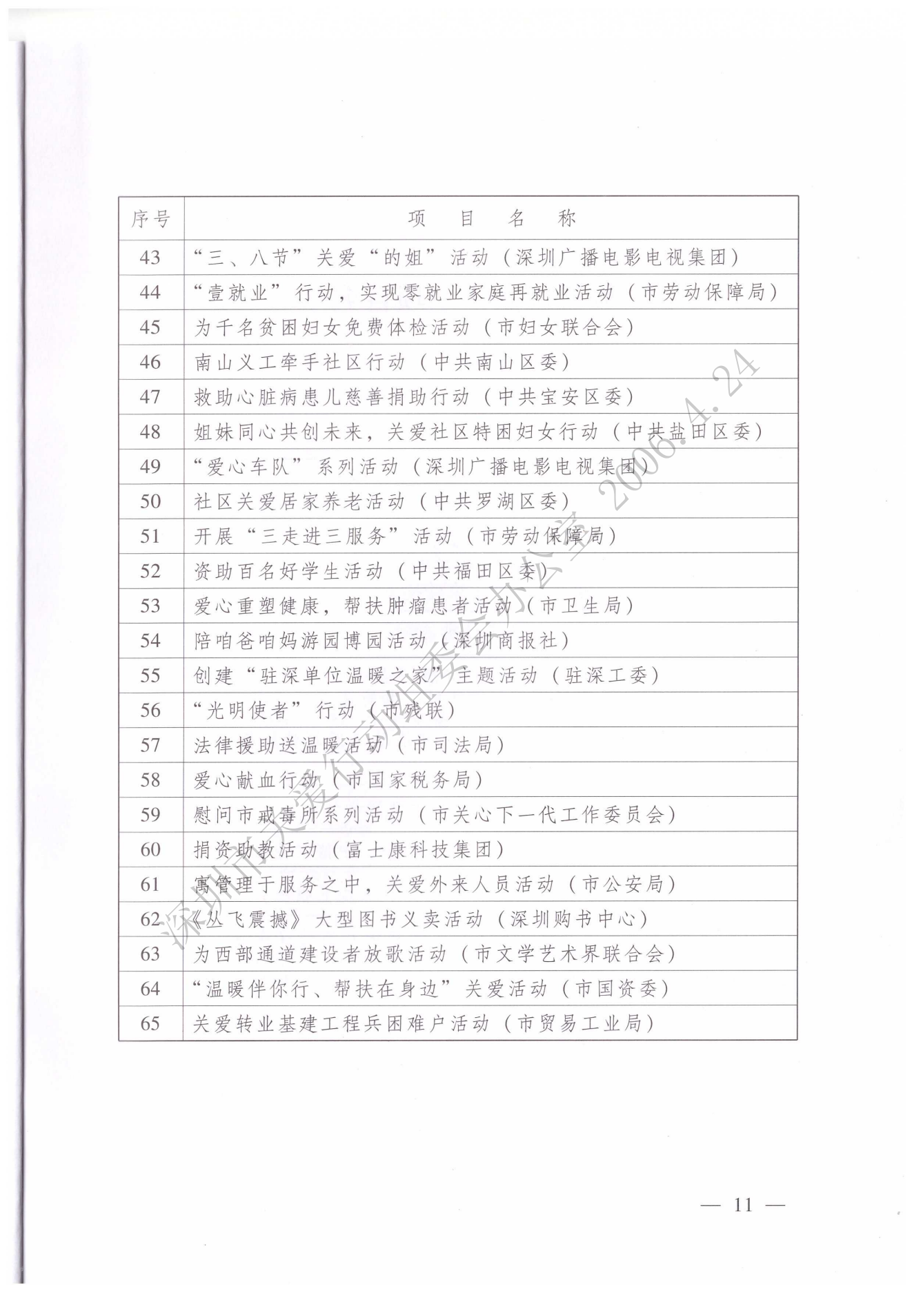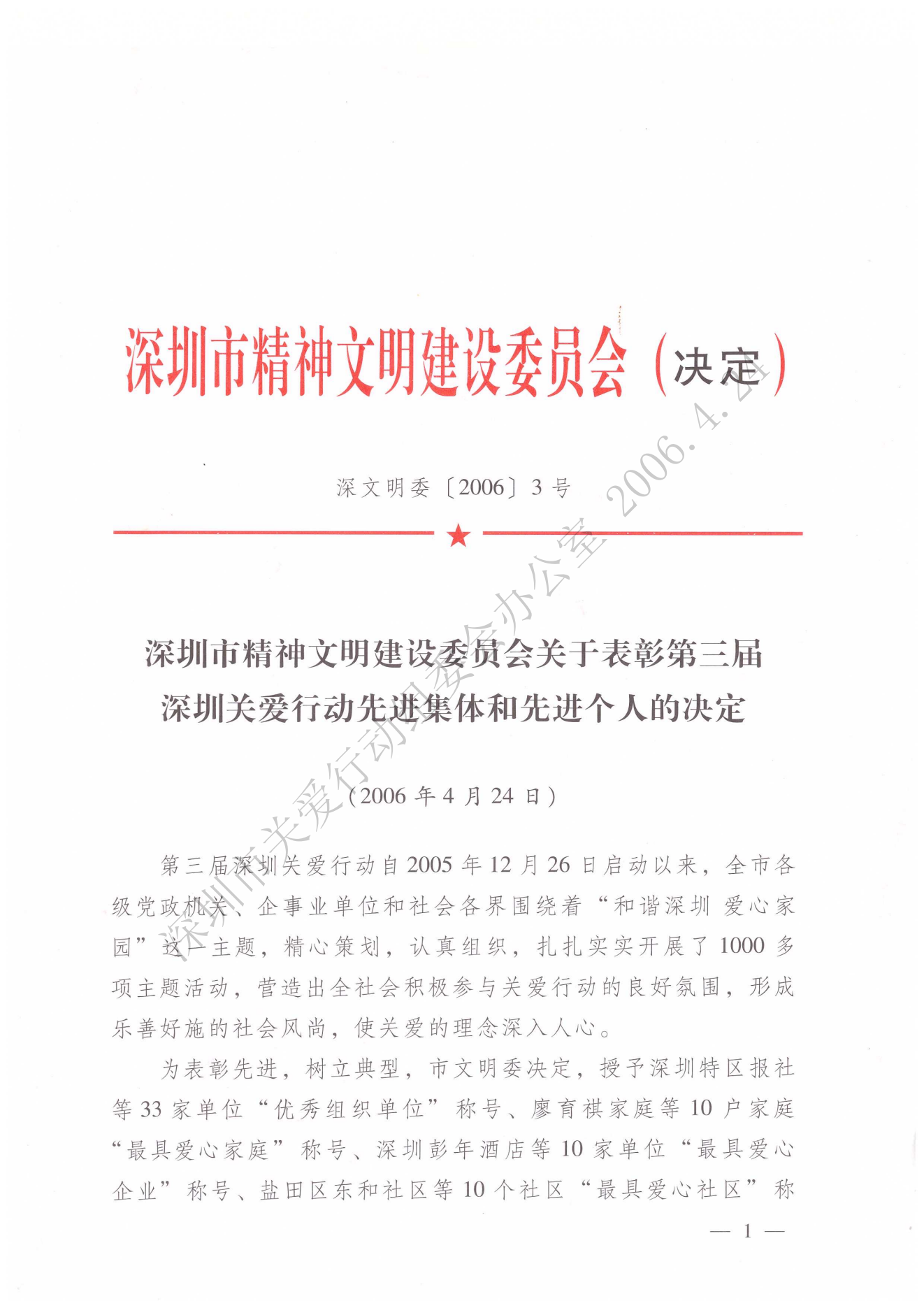 深圳市精神文明建設委員會關于表彰第三屆深圳關愛行動先進集體和先進個人的決定
