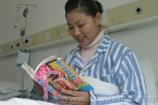 關愛行動--看望腫瘤患者,患者認真閱讀領導慰問送來的食療書籍。(商報記者 商報范國瑞 攝影報導)