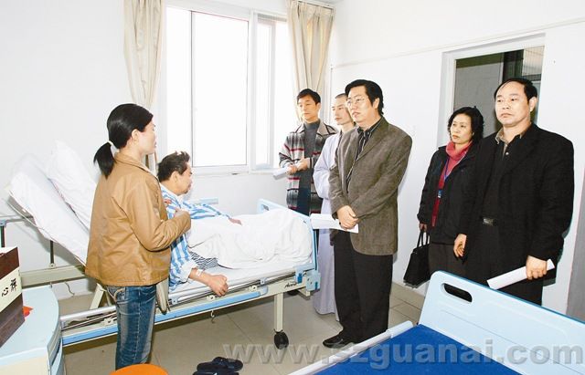 市政協領導王田良來到光明醫院慰問身患鼻咽癌住院的江明星,鼓勵他戰勝病魔。(特區報記者王洪濤攝)