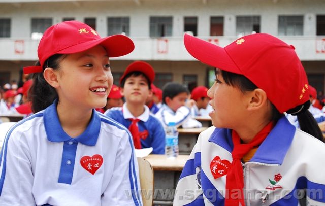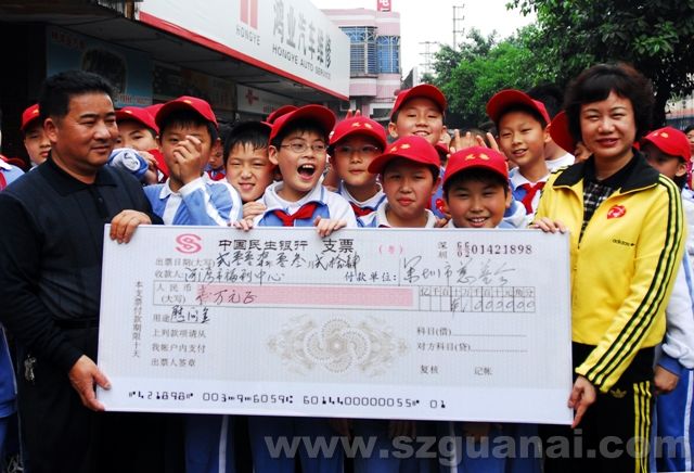 兩名小學生為我市在河源市福利中心設立的“深圳慈善教育基地”揭牌(陳錦輝攝)