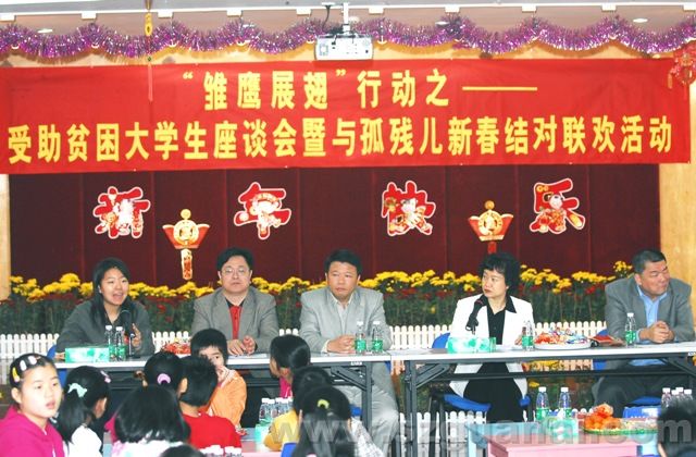 受助大學生(左)與福利中心孤兒簽訂結對協議書(陳錦輝攝)