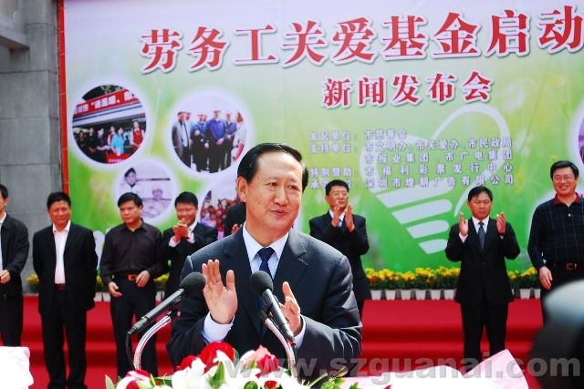 市政協(xié)主席、市慈善會會長李德成宣布“勞務(wù)工關(guān)愛基金”正式啟動(陳錦輝)