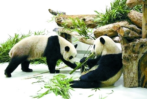 左圖:大熊貓“團(tuán)團(tuán)”和“圓圓”住在臺(tái)北市立動(dòng)物園的新光特展館。 路梅 攝