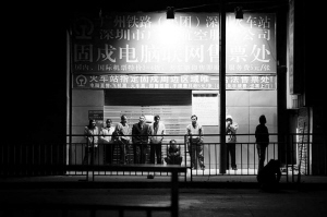 鏡頭回到8日凌晨4時30分,李波和其他排隊買票者聚成一團,相互擋風?!懊刻煊袛?shù)百人來這個售票處買票,兩臺售票電腦,供不應求,大門都會被擠破。