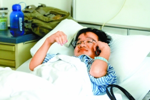 然而就是這個樂觀開朗、一直為愛心事業忙碌著的江楓,現在卻躺在病床上緊縮愁眉。昨天早上,記者在平樂骨傷科醫院的病房里見到了他。他依然戴著那副眼鏡,卻因為病痛不時皺皺眉頭。