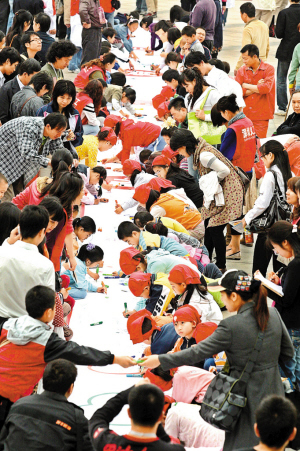 你看,這邊,環(huán)保組的義工們教市民用廢紙折出龍、鳳、馬、老鼠等一個個惟妙惟肖的小動物,變廢為寶,還通過派發(fā)環(huán)保袋、做環(huán)保游戲等增強市民環(huán)保意識,引導市民節(jié)能減排愛護家園;那邊,“贈人書籍,手有書香”,義工們向市民發(fā)出號召:請捐出家中的青少年讀物和科普書籍,給甘肅隴南姚寨小學的孩子們建一個愛心書架……