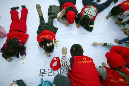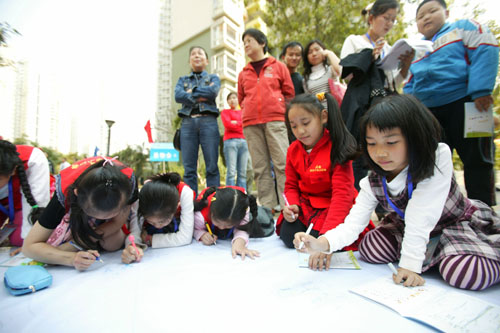 晶報(bào)陽光小記者用手中的筆畫出和諧鄰里