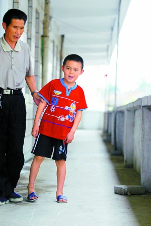 賀御國已能下地走路了。本報記者陳發(fā)清 攝