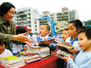 到目前,林園小學已經(jīng)接受到社會各界的捐贈圖書10000多冊,完全可以給災區(qū)的較場小學建設一個“愛心書屋”。