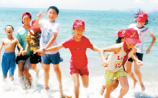 小朋友們來到大梅沙海濱第一次觀看大海。