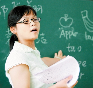 支教志愿者在接受面試。 記者 陳錫明 攝
