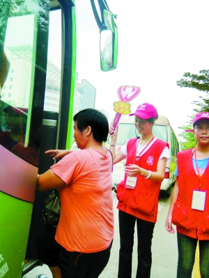 昨日,龍崗區啟動“迎大運我先行”公交出行文明行動,60多名義工登上公交車義務維護車廂秩序,成為城市公交的一道亮麗風景線。(張琨 攝)