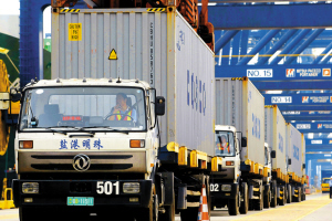 載著深圳板房的貨輪駛出鹽田港開往臺灣。本報記者 丁慶林 通訊員方衛 肖志鋒 攝