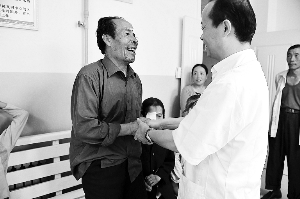 做完白內(nèi)障手術(shù)見到光明,當(dāng)?shù)乩先讼蛏钲卺t(yī)生連聲道謝。