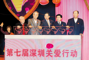 劉玉浦、王榮、李灝、厲有為、李海東一起觸摸啟動(dòng)屏拉開了第七屆深圳關(guān)愛行動(dòng)的大幕。深圳特區(qū)報(bào)記者 岑志利 許業(yè)周 攝