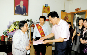 郭春園退休后來深創辦了平樂骨傷科醫院,醫德高尚,醫術精湛,被稱為“一心為民好醫生”。黃揚略拉著郭春園老伴姜淑珍的手噓寒問暖。“老院長對深圳對社會的貢獻很大,其精神永遠值得我們銘記。”黃揚略對平樂骨傷科醫院工會主席說,關愛英模家屬就是對英模精神的一種傳承和弘揚。