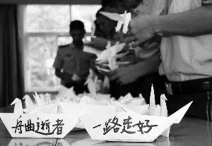 8月15日,廣東公安邊防六支隊(duì)邊防官兵折紙鶴、紙船,向舟曲遇難同胞寄托哀思。 深圳商報(bào)記者 薛云麾 通訊員 馮立峰 莫署攝