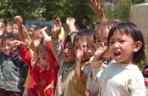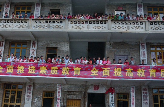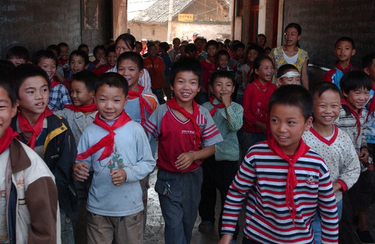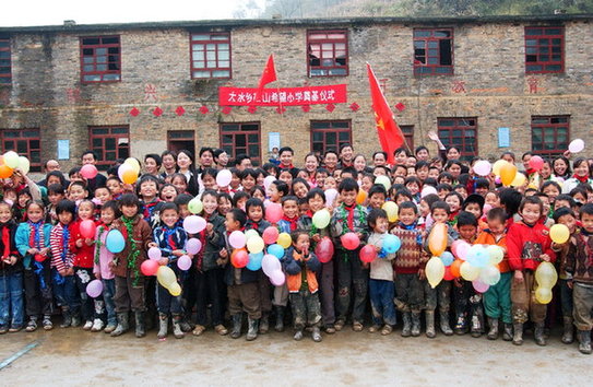 貴州大方縣大水鄉(xiāng)鞍山小學學生迎接第二批深圳“募師支教”志愿者