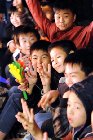 為慶祝元旦佳節,豐富外來勞務工及社區居民文化生活,活躍節日氣氛。昨晚,由坪山新區黨工委組織部、深圳市鵬星社會工作服務社主辦的元旦文娛晚會在馬巒家德工業園盛大開演。鵬星社會工作服務社的社工、義工人員以及外來勞務工積極參加演出,自編自演了豐富多彩的文藝節目。近1000名勞務工及附近社區居民觀看了本場演出。圖為外來勞務工的子女在觀看演出。深圳晚報記者陳玉 攝