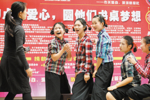 “愛心小書桌”活動啟動儀式上,孩子們在表演舞蹈《愛心小書桌》。