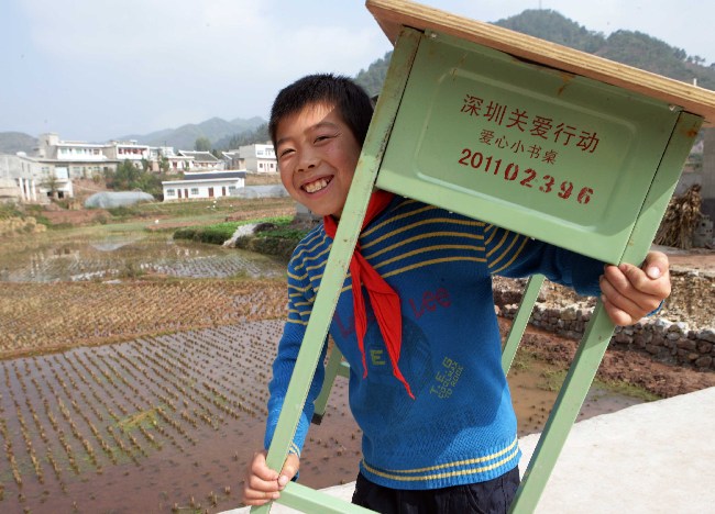小書桌在貴州大方縣響水鄉拉魯小學發放