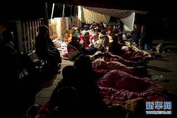 4月20日,蘆山縣寶盛鄉(xiāng)玉溪村村民在臨時(shí)帳篷中過夜。當(dāng)日,四川雅安蘆山縣發(fā)生7.0級(jí)地震。其中蘆山縣的龍門鄉(xiāng)、寶盛鄉(xiāng)、太平鎮(zhèn)三地受災(zāi)最為嚴(yán)重。新華社記者 費(fèi)茂華 攝