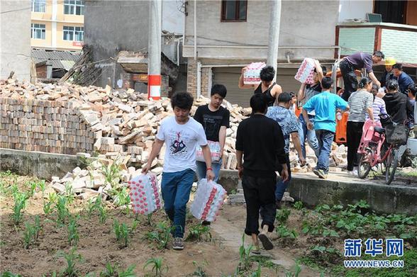 4月20日,寶盛鄉(xiāng)群眾在運(yùn)送礦泉水。當(dāng)日,四川雅安蘆山縣發(fā)生7.0級(jí)地震。其中蘆山縣的龍門鄉(xiāng)、寶盛鄉(xiāng)、太平鎮(zhèn)三地受災(zāi)最為嚴(yán)重。新華社記者 江宏景 攝