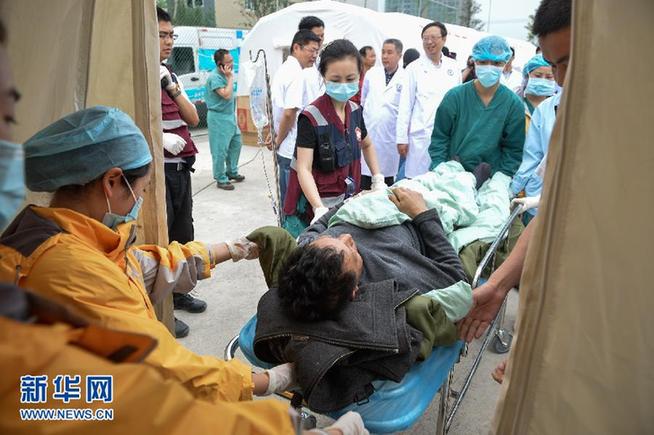 4月21日,一名寶興縣靈關鎮地區受災群眾被送到重慶緊急醫學救援隊的臨時醫療點進行救治。來自民政部的消息,據四川省民政廳21日17時統計,四川蘆山7級地震已造成208人死亡、失蹤,其中184人死亡、24人失蹤,另有11826人受傷。新華社記者李鑫 攝