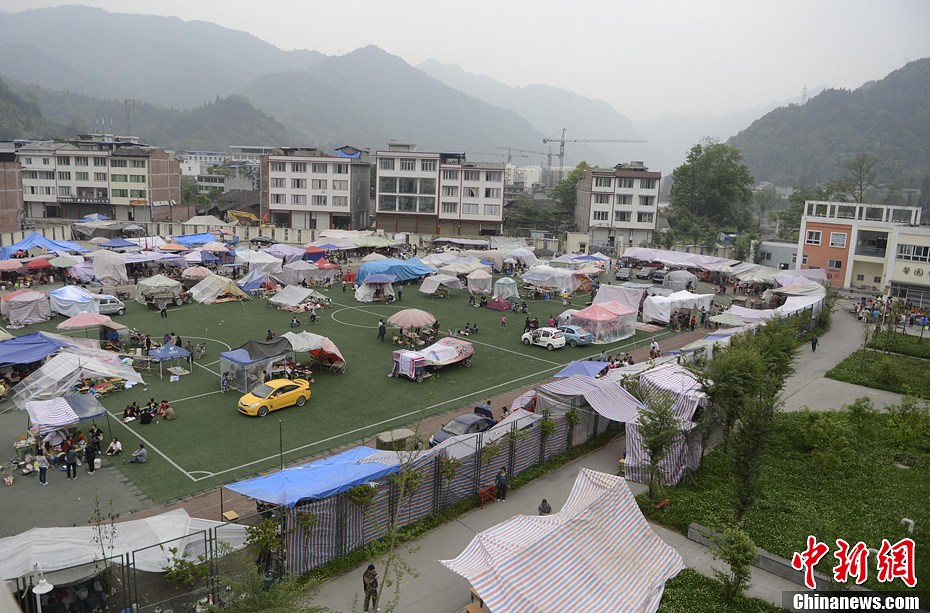 4月21日,四川省雅安市寶興縣靈關(guān)鎮(zhèn),靈關(guān)中學(xué)災(zāi)民安置點(diǎn)。廖攀攝
