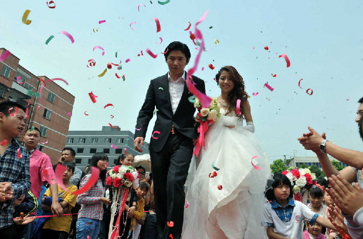 4月21日,盡管余震不斷,滎經縣城一對新人如期舉行了婚禮。“4·20”蘆山地震給當地居民的生活造成很大破壞,在條件簡陋的臨時居所里,生活依然在繼續。新華社記者楊楹 攝