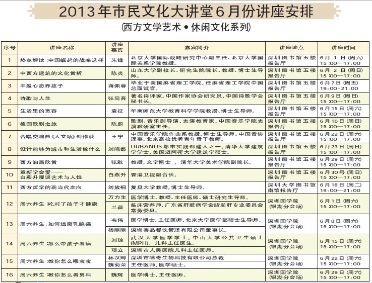 6月市民文化大講堂推出16場(chǎng)講座