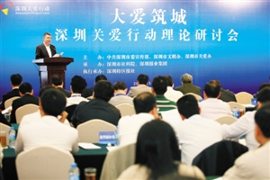 ????從2003年開始,深圳每年組織一屆“深圳關愛行動”。關愛行動經過12年耕耘和積累已經成為深圳構筑“愛心之城”、“文明之城”的重要載體和特色品牌。為了系統梳理12年來關愛行動的成果經驗,特別是新常態下,如何把深圳關愛行動放在全球視野大環境下來探求進一步發展的思路和策略,由市委宣傳部、市文明辦、市關愛辦主辦,市社科院、深圳報業集團承辦的大愛筑城——深圳關愛行動理論研討會,3月28日下午在五洲賓館召開。深圳市委常委、宣傳部長王京生作了主旨演講。王京生說,深圳從2003年起,每年在全市組織開展一屆“深圳關愛行動”,這項全城共襄的盛舉成為深圳“大愛筑城”的生動載體。期間,關愛理念如同空氣、關愛項目如同陽光、關愛力量如同雨水、關愛制度如同土壤,它們共同為城市的生長創造了有利的條件,使她成長為一座聞名遐邇的“愛心之城”。