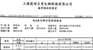 (5月2日,南方醫科大學南方醫院出具的有關曾雨詩骨髓型號的報告)