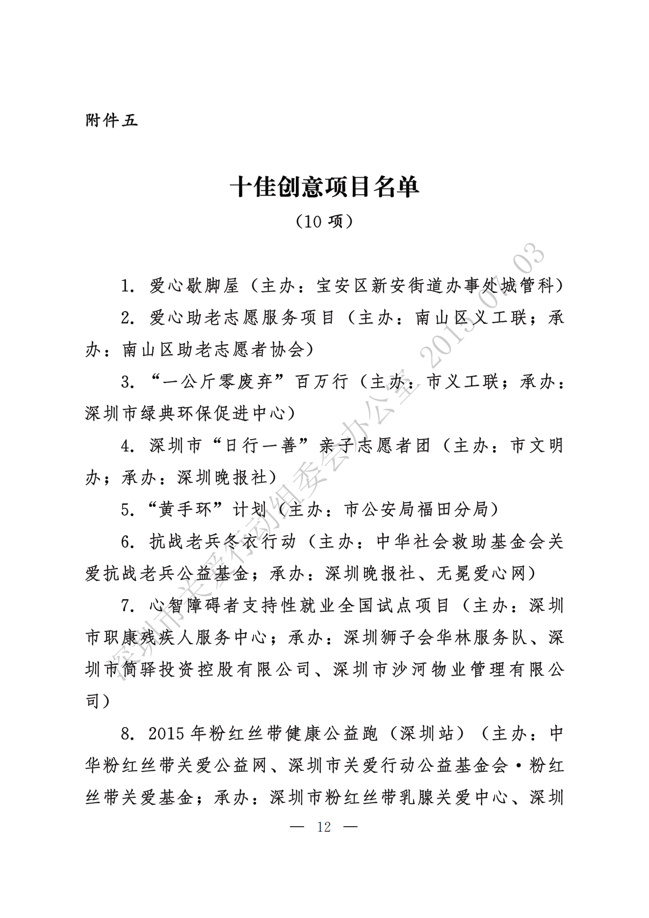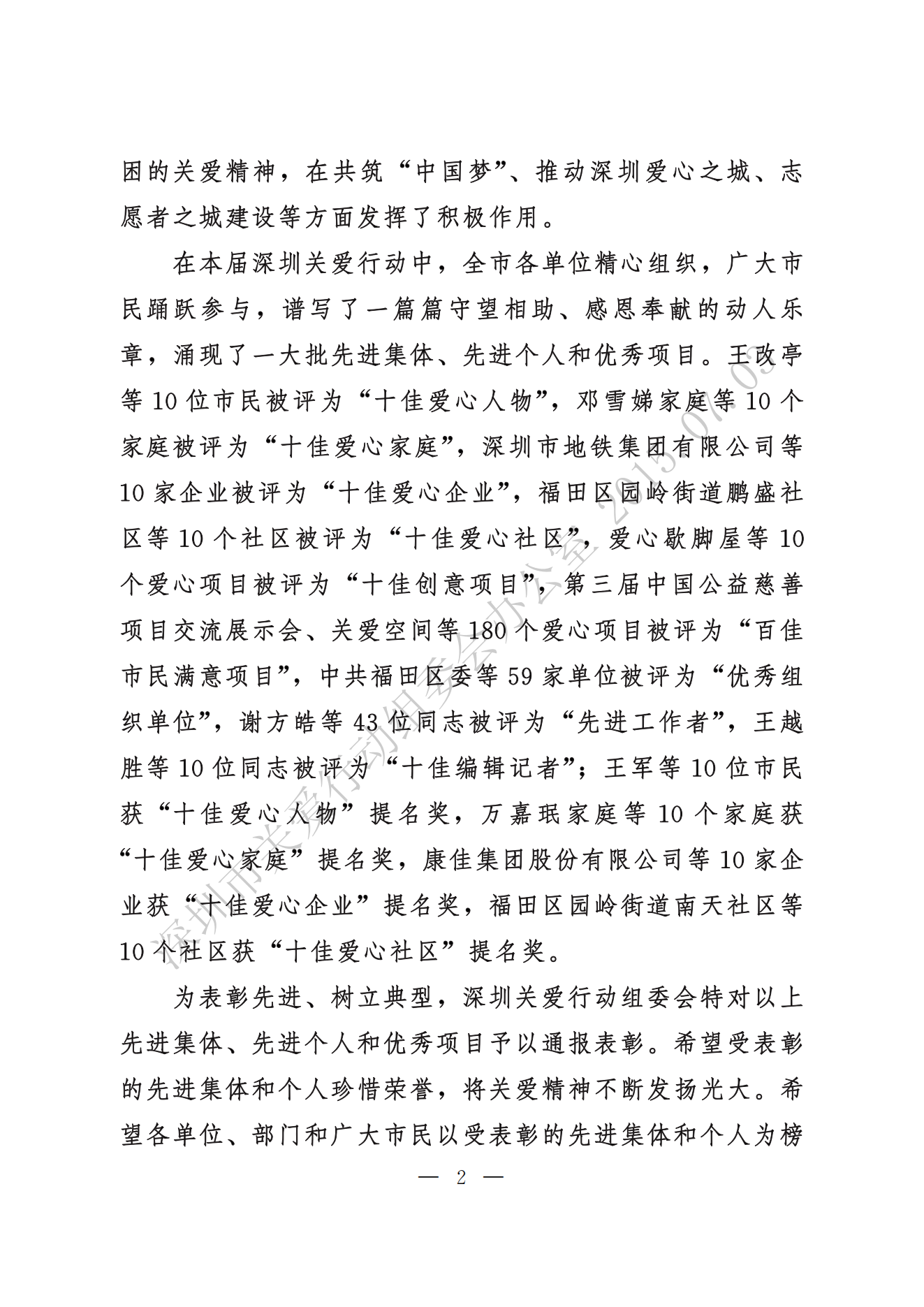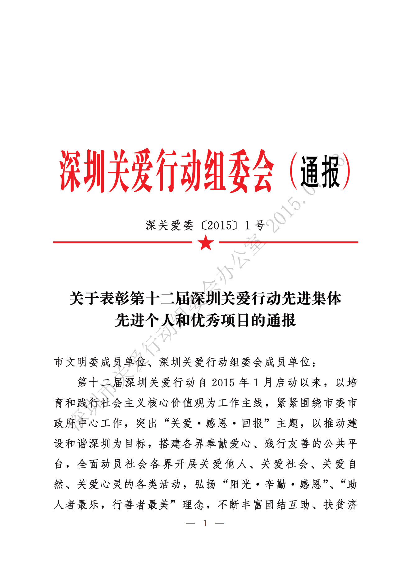 關于表彰第十二屆深圳關愛行動先進集體先進個人和優秀項目的通報