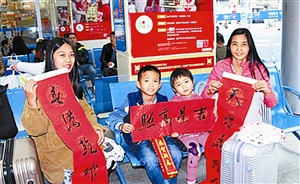 ▲寶安書法家協(xié)會(huì)聯(lián)合寶安群藝館在寶安汽車站為來深建設(shè)者們送上了一副副紅彤彤的春聯(lián)和美好的祝福。