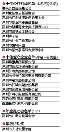 2017深圳關愛行動表彰晚會獲獎名單 (部分)