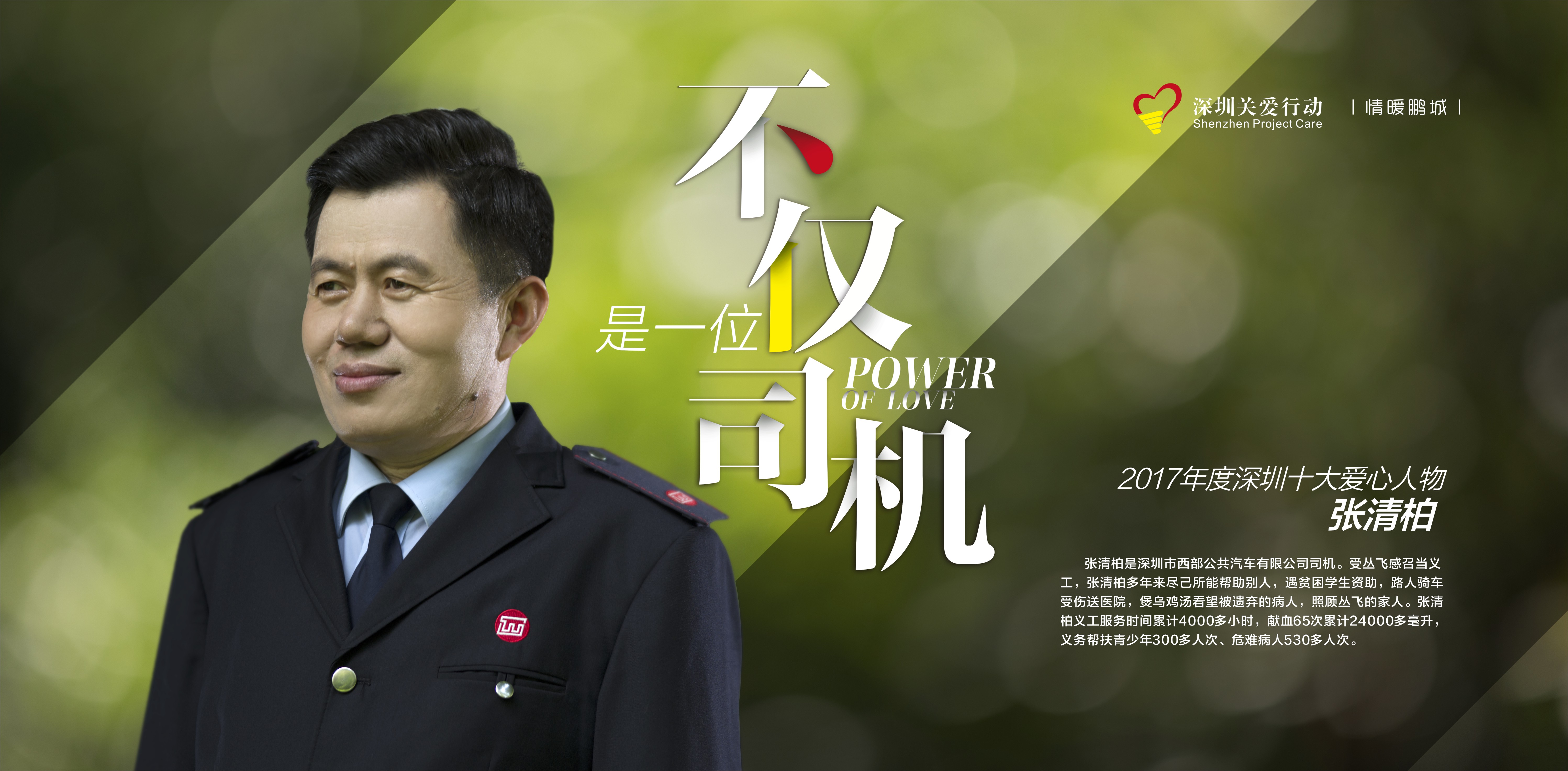 男,深圳市西部公共汽車有限公司駕駛員。2006年,張清柏受叢飛感召當(dāng)義工,多年來耗盡積蓄助人:偶遇貧困學(xué)生,他積極資助;路人騎車受傷,他毫不猶豫送往醫(yī)院,捐款又陪伴;被遺棄的病人無人照料,他煲烏雞湯、買水果看望并捐款;叢飛去世后他主動(dòng)照顧叢飛家人,展示了樸實(shí)的人間真情,叢飛的父親對(duì)張清柏贊不絕口,稱他早就是自己的“親兒子”。張清柏義工服務(wù)時(shí)間累計(jì)4000多小時(shí),累計(jì)獻(xiàn)血65次達(dá)24000多毫升,義務(wù)幫扶青少年300多人次、危難病人530多人次。他是深圳松崗首屆十佳技術(shù)能手、深圳西部公汽十佳親善大使、西部公汽第二屆最美公交人、深圳義工聯(lián)合會(huì)五星級(jí)義工、全國(guó)無償獻(xiàn)血金獎(jiǎng)獲得者。2014年,當(dāng)選中國(guó)第四屆最美職業(yè)工作者。