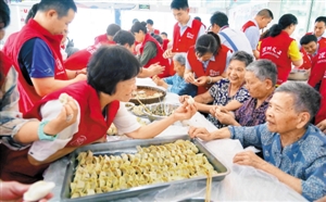 日前,深圳鵬程電動(dòng)愛(ài)心車隊(duì)的的哥放棄營(yíng)運(yùn),買來(lái)慰問(wèn)品,和市義工聯(lián)松柏之愛(ài)組的義工,來(lái)到市社會(huì)福利中心老人院,聯(lián)手舉辦“感恩母愛(ài),讓愛(ài)傳遞”獻(xiàn)愛(ài)心活動(dòng),和老人一起包餃子。深圳商報(bào)記者 陳錫明 通訊員 黃天肇 攝