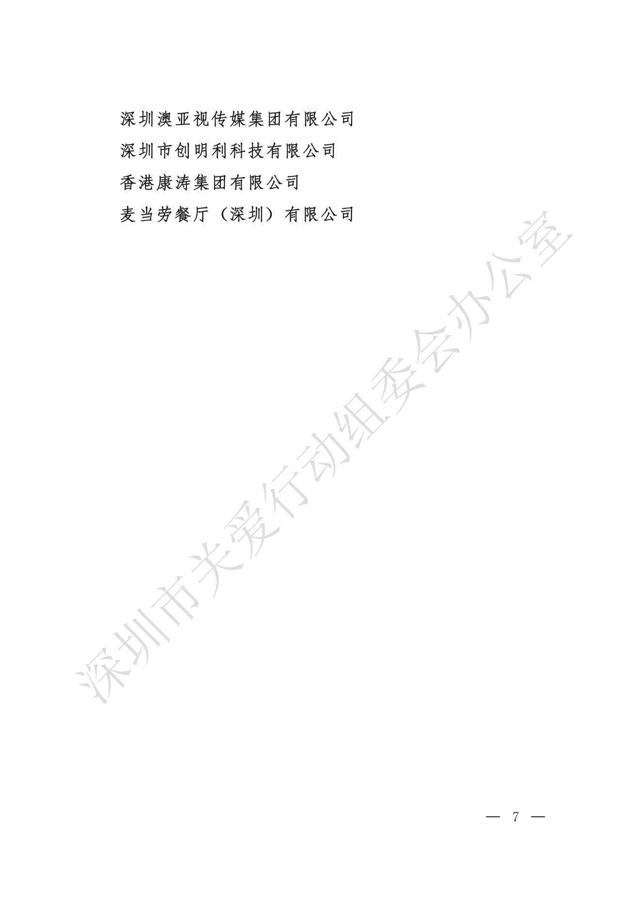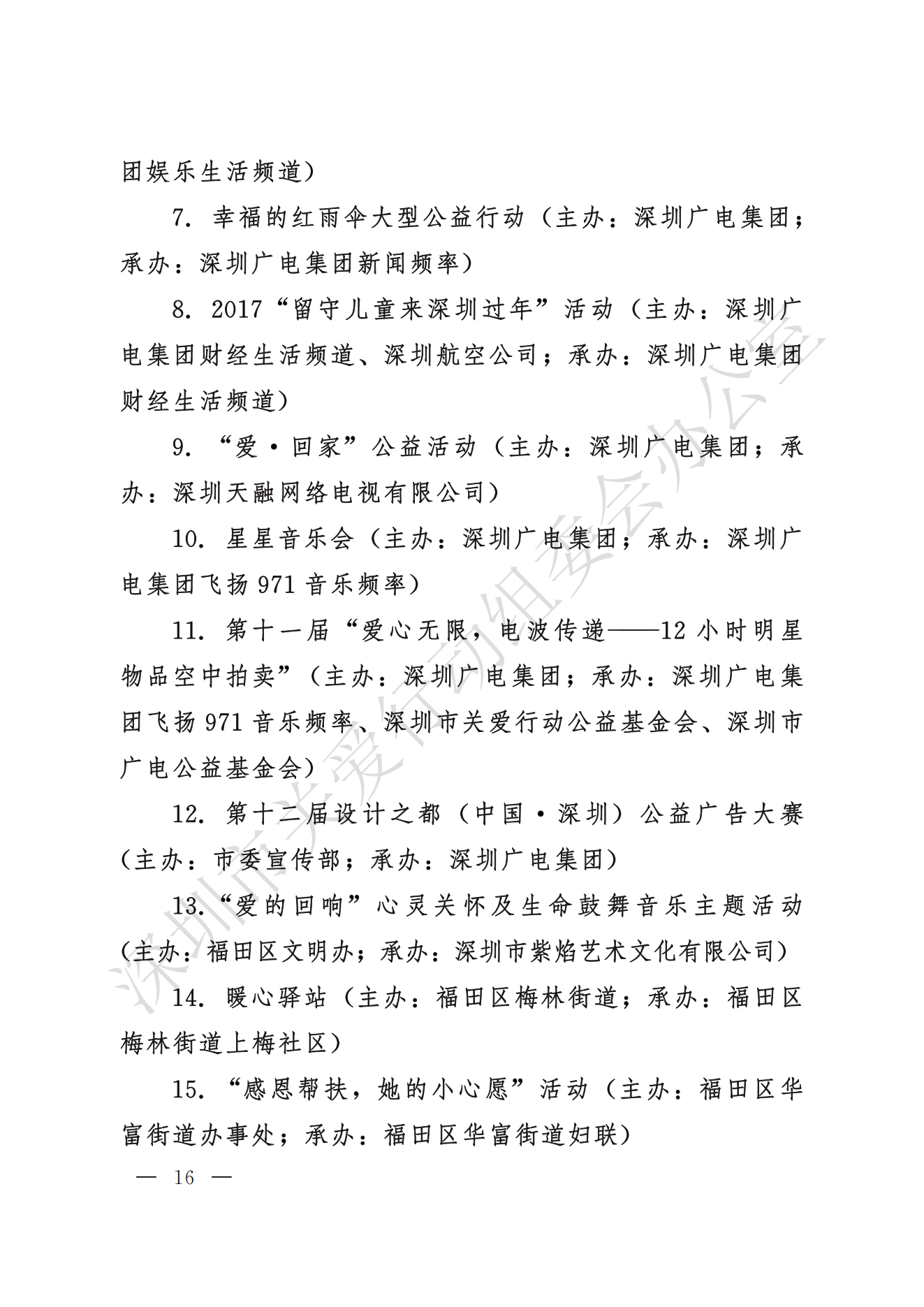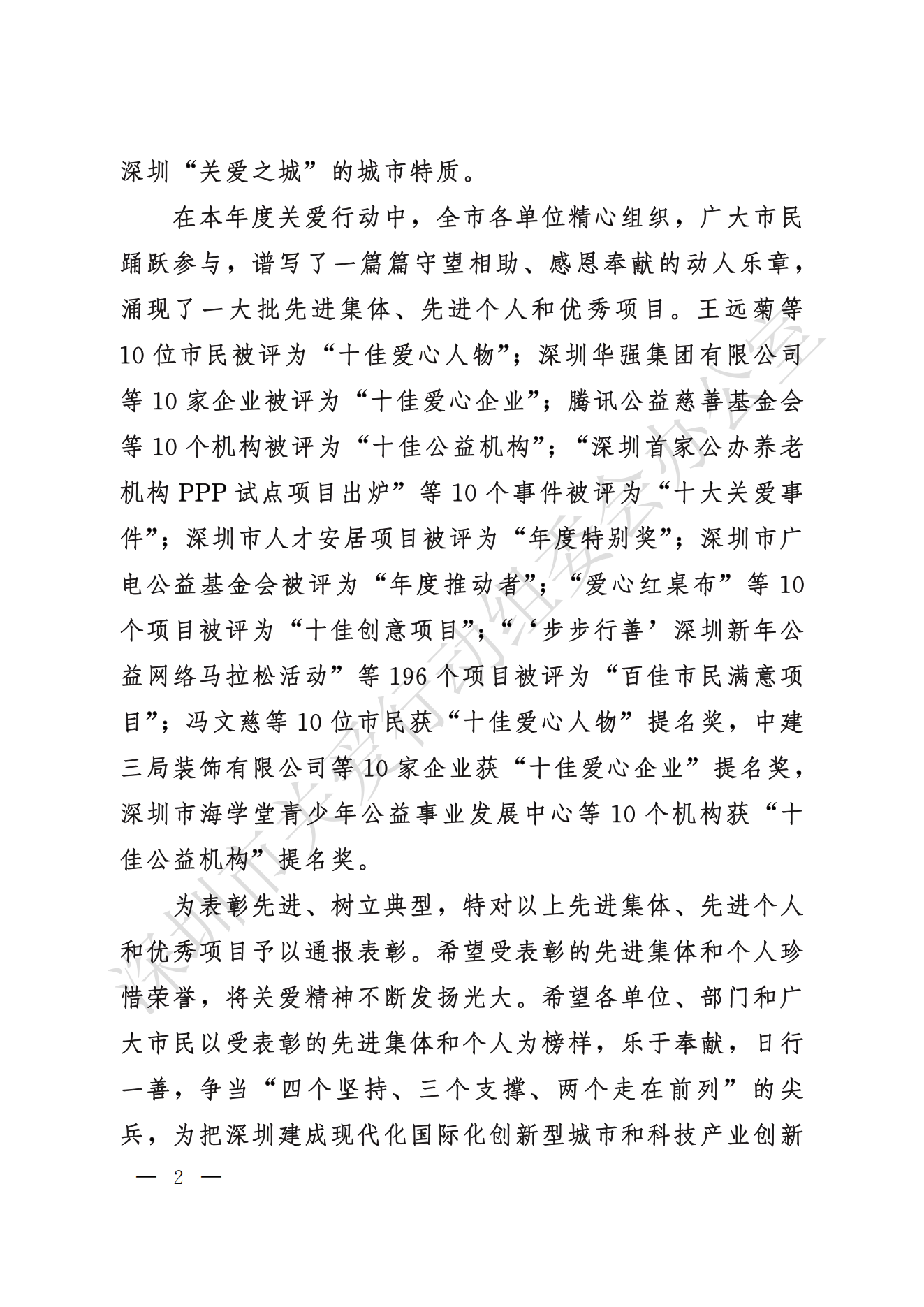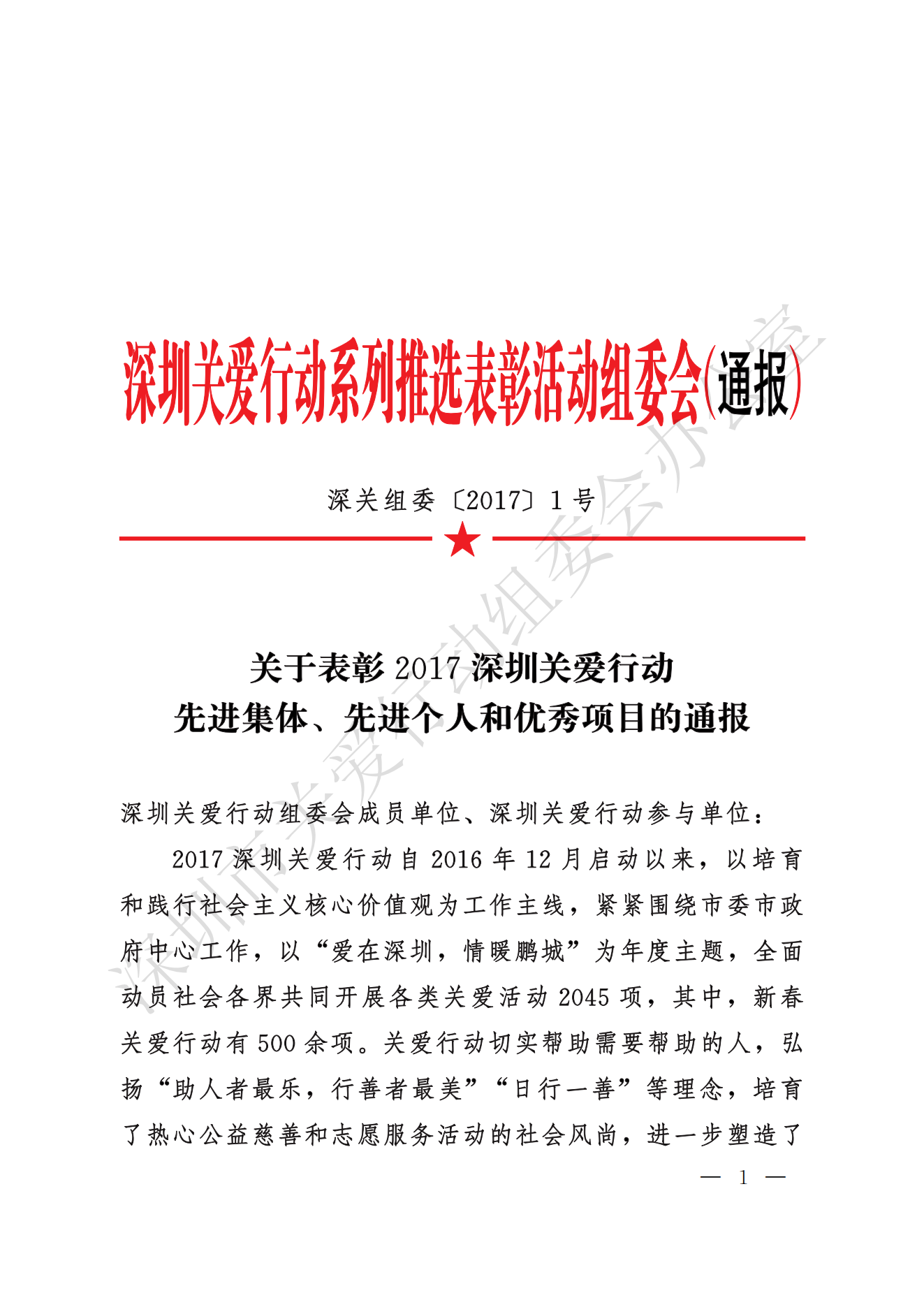 關于表彰2017深圳關愛行動先進集體、先進個人和優秀項目的通報