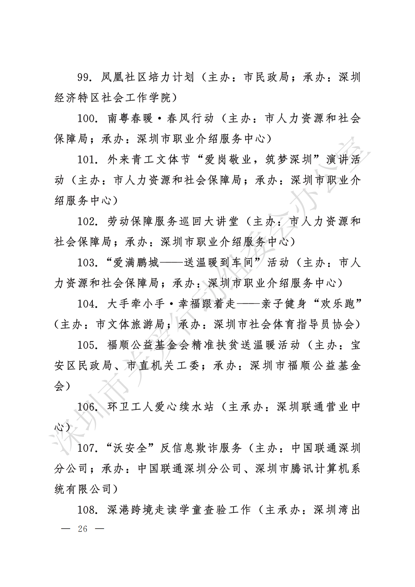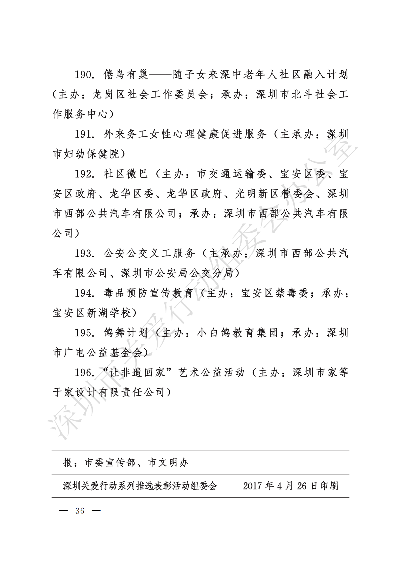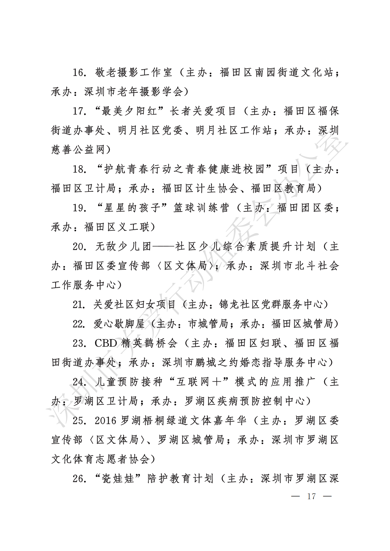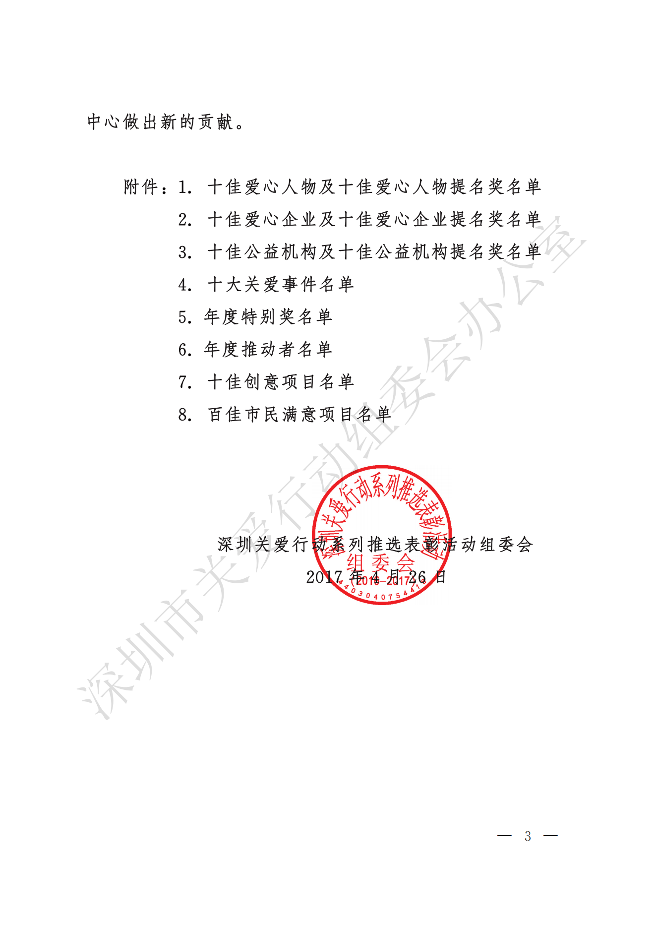 關于表彰2017深圳關愛行動先進集體、先進個人和優秀項目的通報