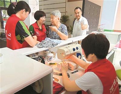 羅湖區社會福利中心U站的義工們,考慮到入住的老人衣著舒適和出入安全,近日特增設縫補服務。他們拿來縫紉機、針線工具和布料,隨時免費為老人縫補衣服,制作輪椅和床上安全帶,受到老人和家屬的好評。 深圳晚報特約記者 黃天肇 攝