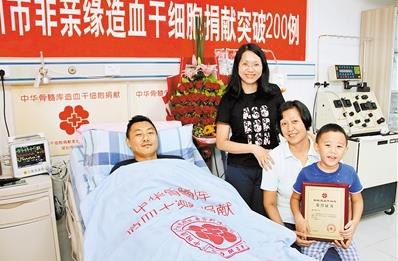 去年9月13日上午,深圳商報員工徐偉林在市血液中心捐獻了造血干細胞,采集后的造血干細胞隨后被送往北京救人。徐偉林也成為全國第5947例造血干細胞捐獻者,他的善舉感動無數深圳人。徐偉林的義舉得到了家人的支持,這是徐偉林一家三口和他的母親合影。(本報資料圖片)