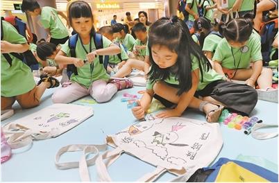 昨日,由寶安區(qū)沙井街道黨工委、辦事處主辦的“蠔鄉(xiāng)暖童心,因愛相守護”留守兒童關(guān)愛月在沙井新沙天虹購物中心啟動。來自湖南、湖北、江西等省的300多位外來留守兒童“小候鳥”參加活動。圖為孩子們正在彩繪環(huán)保袋。