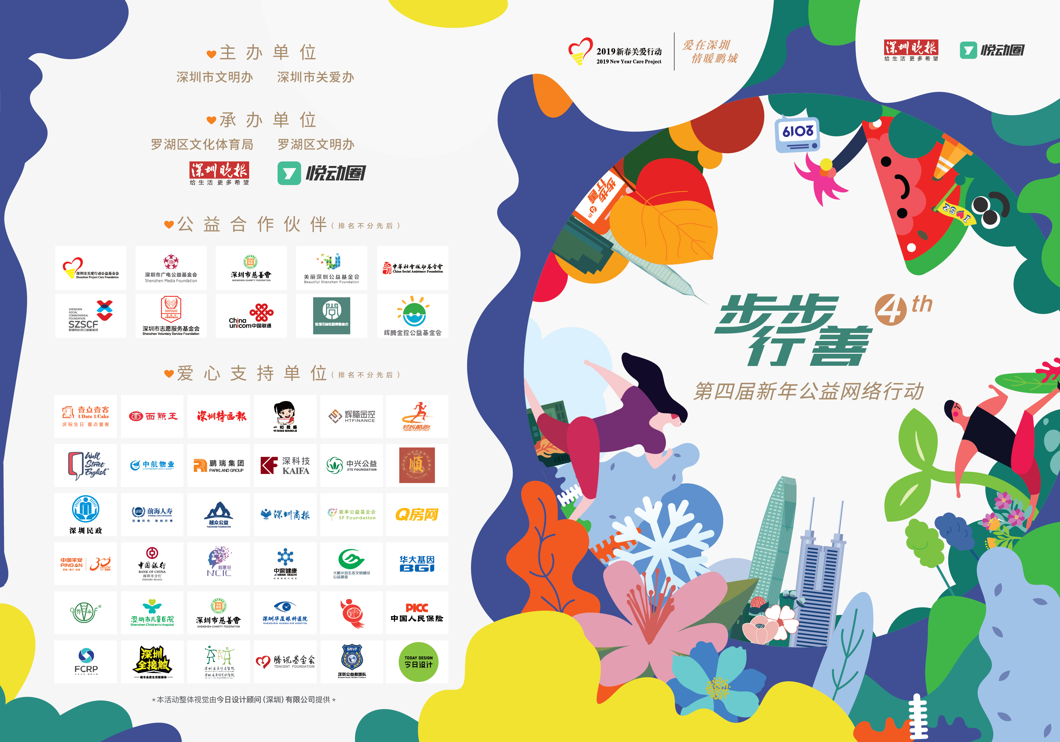 2019年1月1日上午,由深圳市文明辦、深圳市關愛辦主辦,羅湖區文化體育局、羅湖區文明辦、深圳晚報社、悅動圈承辦的“步步行善”第四屆深圳新年公益網絡行動在羅湖體育休閑公園啟動,并以此為標志,在全市范圍啟動2019新春關愛行動。該活動倡導“新年第一天、善行每一步”,動員廣大市民步履不停、向善而行,以捐贈步數的方式為關愛項目籌款,向為改革開放和城市發展作出貢獻的建設者表達敬意。