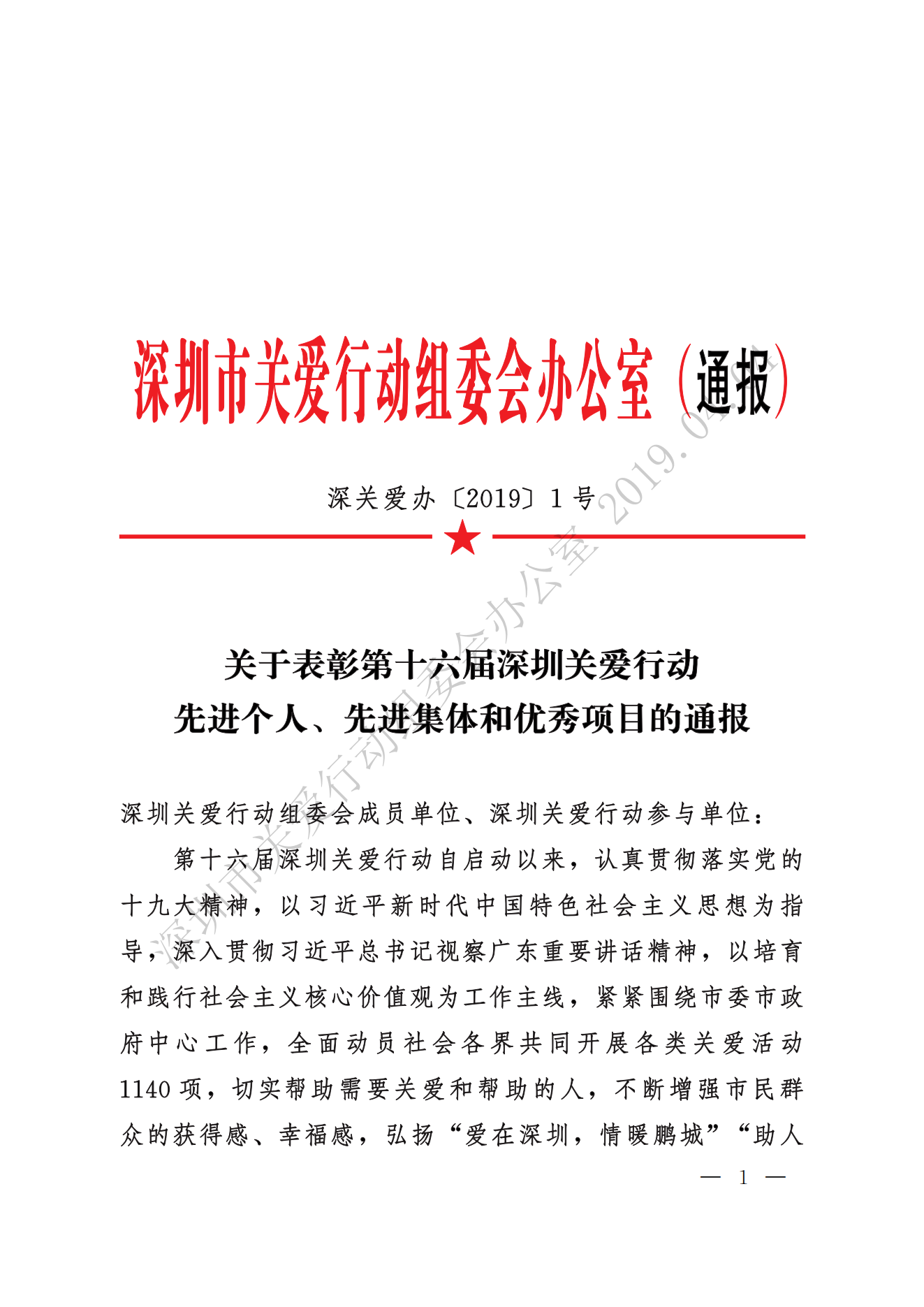 關于表彰第十六屆深圳關愛行動先進個人、先進集體和優秀項目的通報