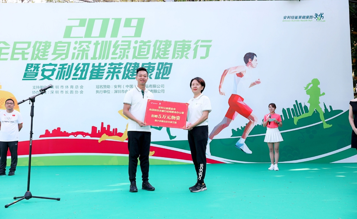 此次跑步隊伍共分為6個方陣,值得一提的是,其中一個方陣的跑友是深圳市醫護人員代表。有了“白衣天使”的助力,使此次健康跑更顯得意義非凡。自去年8月開始,安利公益基金會與深圳市關愛辦合作舉辦“關愛白衣天使”活動,每月定期在安利深圳體驗館為在深醫護人員舉辦各種減壓活動,讓他們能放松身心,以更好的工作狀態為患者提供服務。為了延續這份愛心,安利公益基金還在現場將此次健康跑活動所獲得的門票收入捐出,繼續用于“關愛白衣天使”項目。這也讓參與此次健康跑活動的小伙伴不僅能在跑步過程中鍛煉身體,還能做公益獻愛心,一舉兩得。