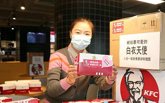 “你逆向前行,我守望相助”,面對疫情,肯德基積極參與到防控阻擊戰中,共克時艱。2020年1月27日起,肯德基免費為武漢醫護人員送出愛心餐點。而深圳市場各肯德基餐廳也發起了對疾病預防控制中心、社區防疫點等一線工作人員的愛心行動,目前,深珠瓊桂四地肯德基聯手為19個機構送出1019份愛心餐。截至2月6日,肯德基已為全國22個省份,超過180家醫院、社區防疫點、交管等單位送出了超過2萬份免費愛心餐點,超過1700名員工志愿者積極參與貢獻力量。另據悉,肯德基母公司百勝中國控股有限公司,早在除夕,便已緊急向中國紅十字基金會確認捐贈人民幣300萬元,用于幫助和救助“參與在武漢抗擊疫情的醫務工作者”。