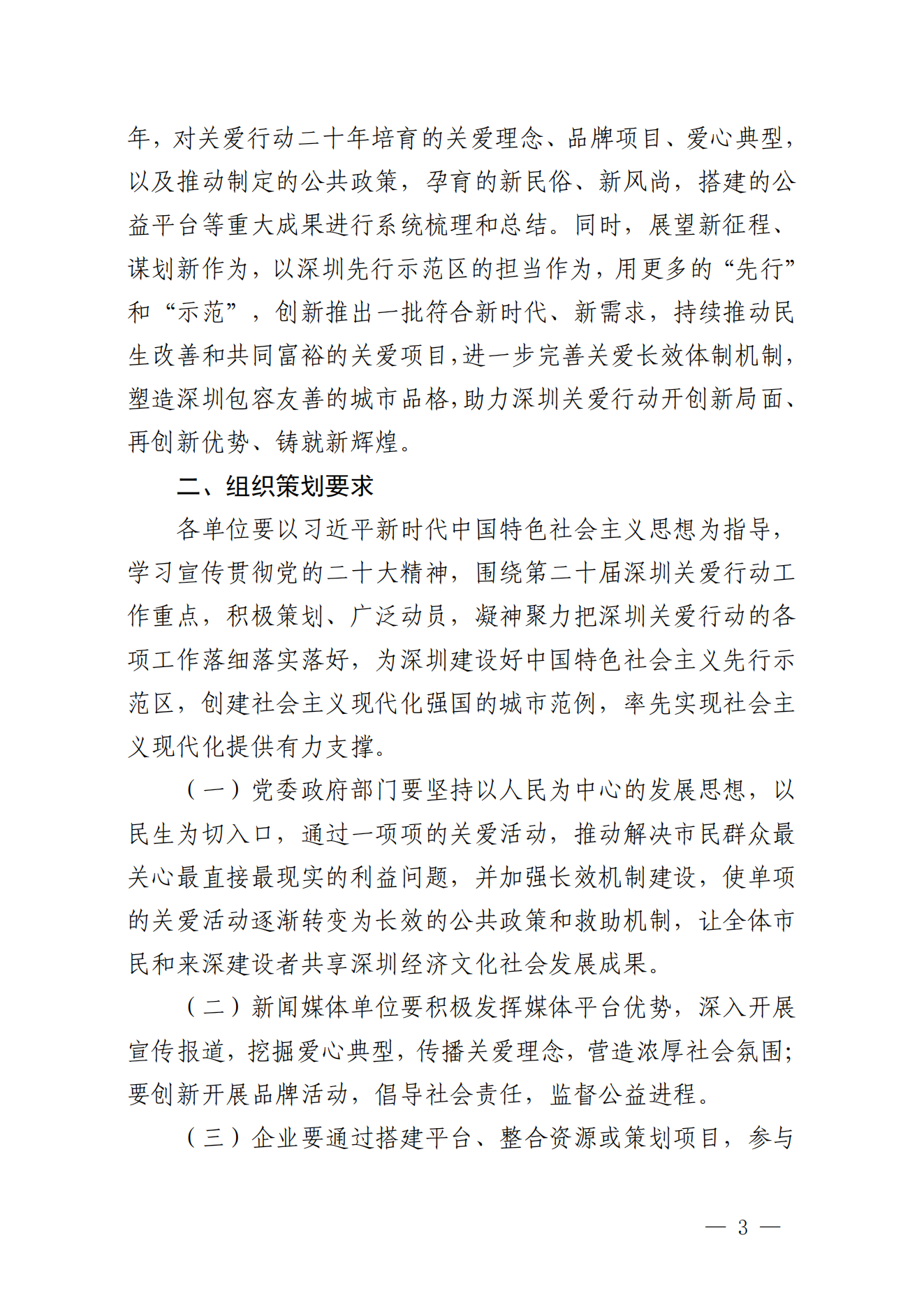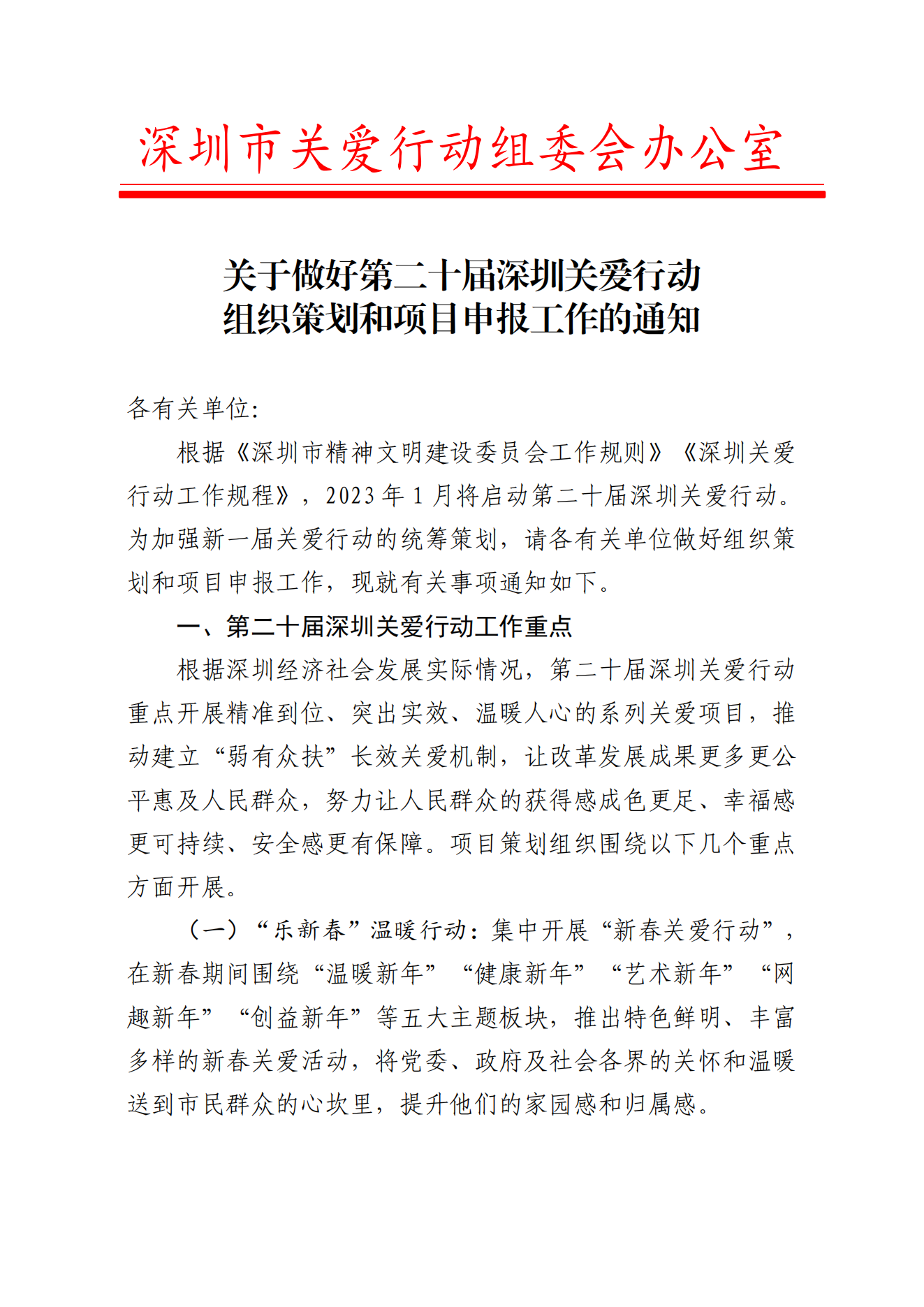 關(guān)于做好第二十屆深圳關(guān)愛行動組織策劃和項目申報工作的通知