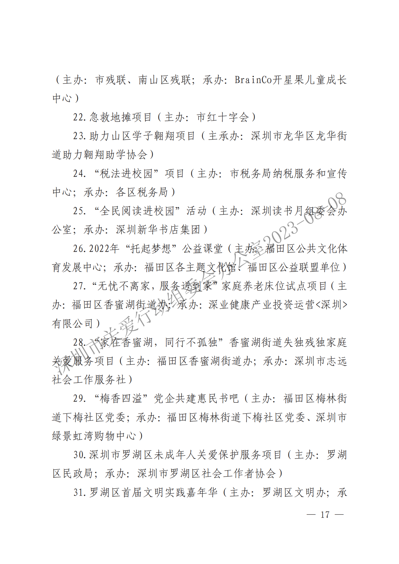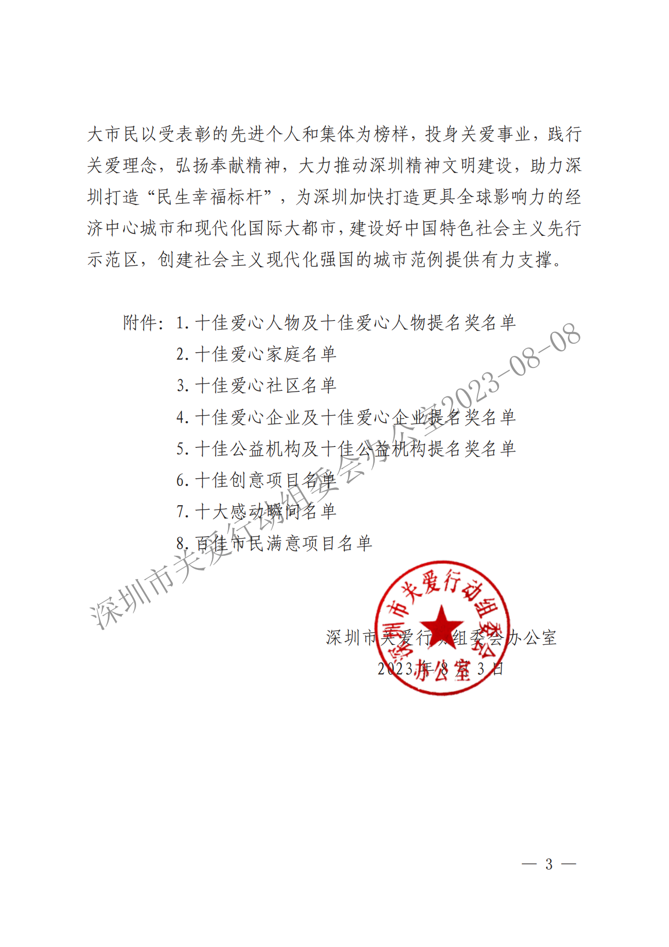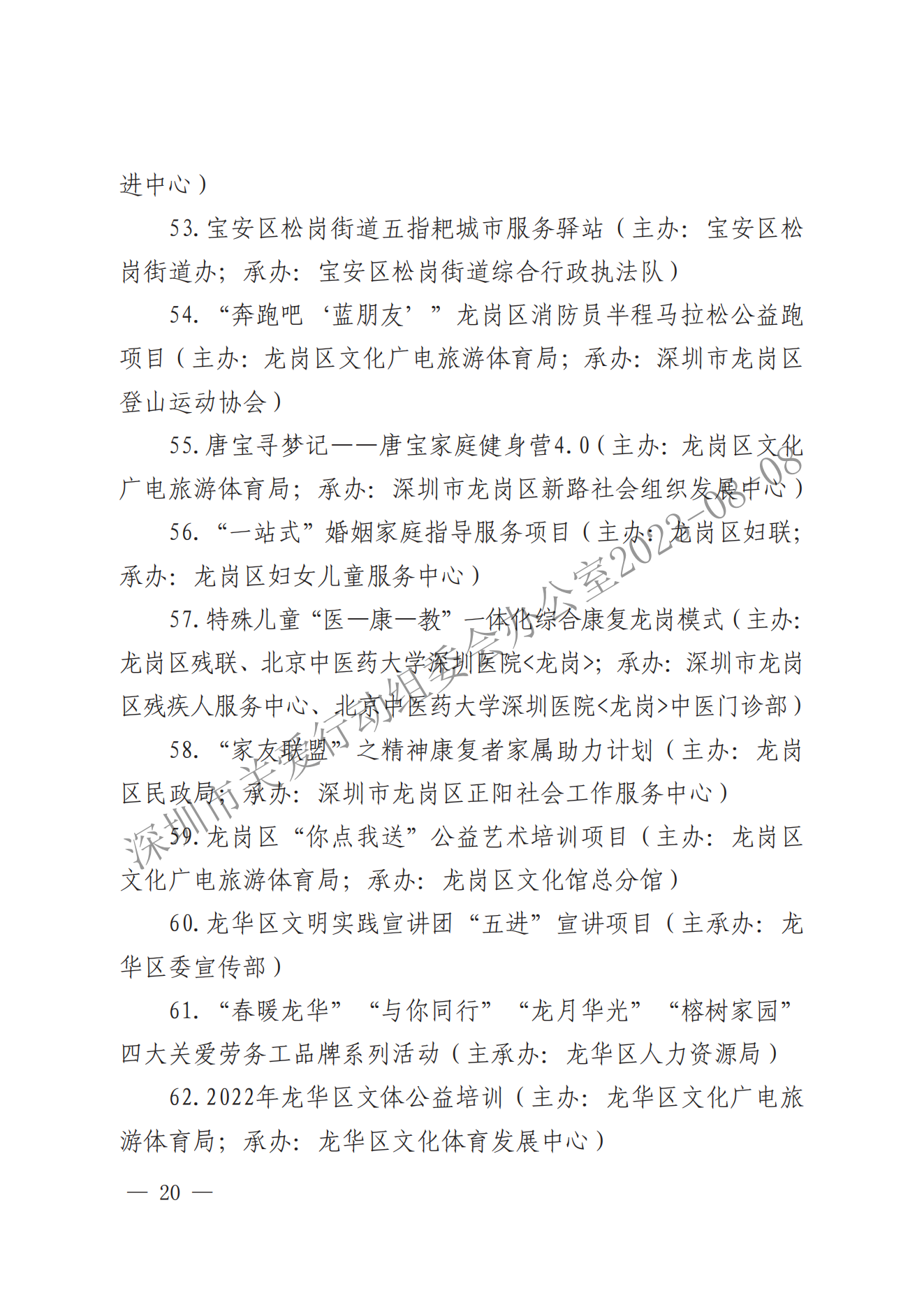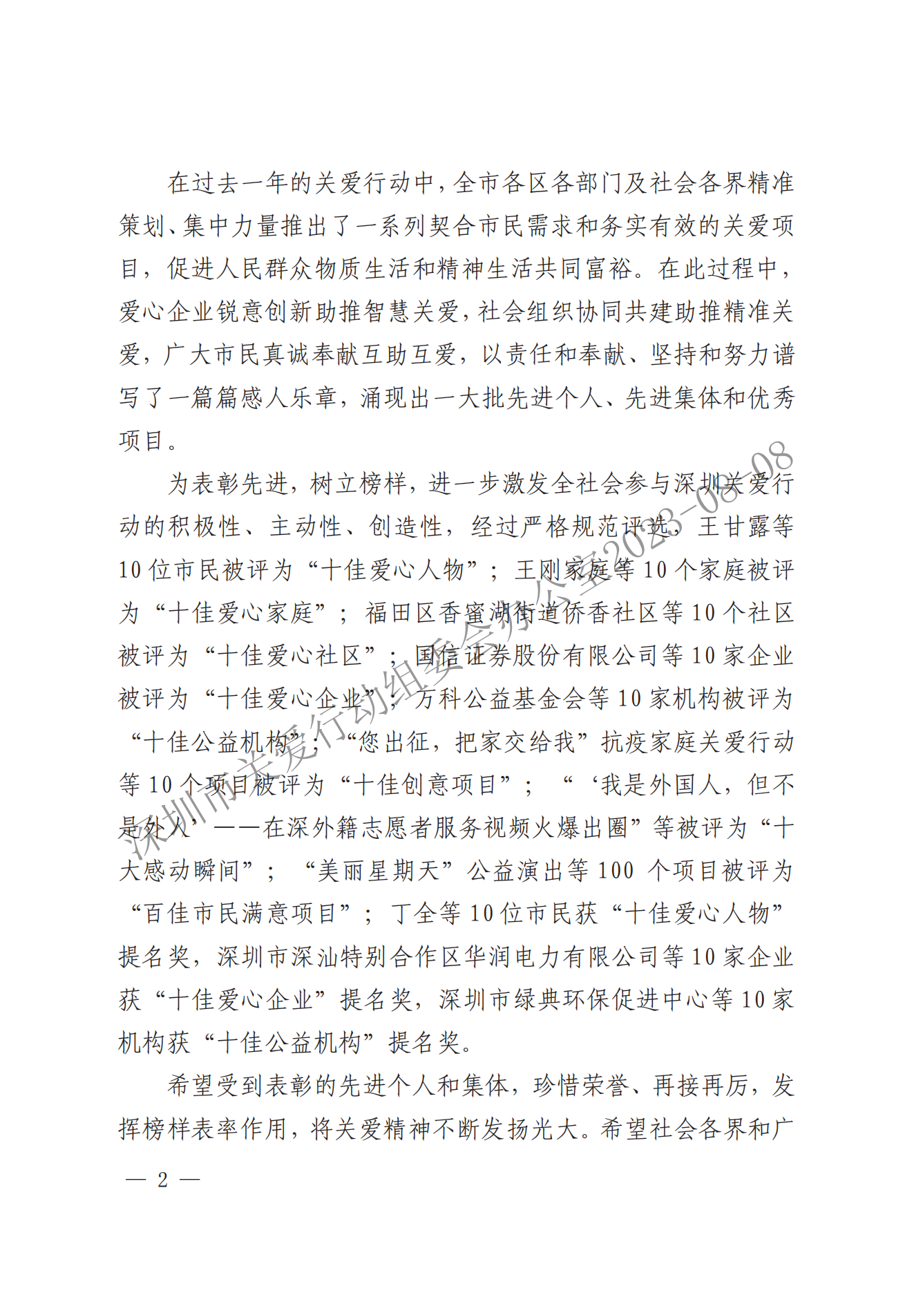 關于表彰第二十屆深圳關愛行動先進個人、先進集體和優秀項目的通報