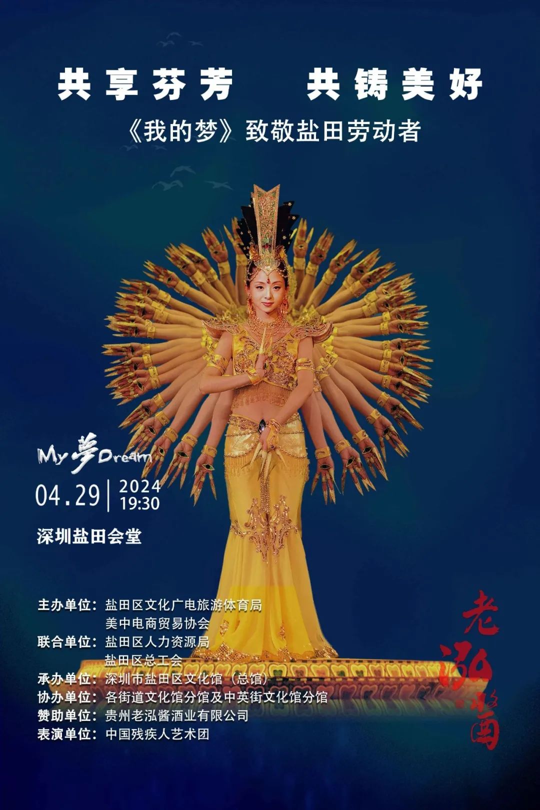 藝術團承載著殘疾人的藝術夢想,秉承“真、善、美”的人文情懷與“特、雅、精”的藝術追求,以特殊方式塑造藝術,創作了大型音樂舞蹈詩《我的夢》、聾人舞蹈《千手觀音》、盲人舞蹈《去看春天》、肢殘人舞蹈《生命之翼》等一批特殊藝術經典作品,再現了殘疾人精彩人生,實現了殘疾人的尊嚴與價值,成為國際知名的藝術團體,特立于世界文化之林。4月29日晚19:30中國殘疾人藝術團將在鹽田會堂帶來一場音樂舞蹈詩——《我的夢》,致敬鹽田勞動者,共享芬芳,共筑美好。